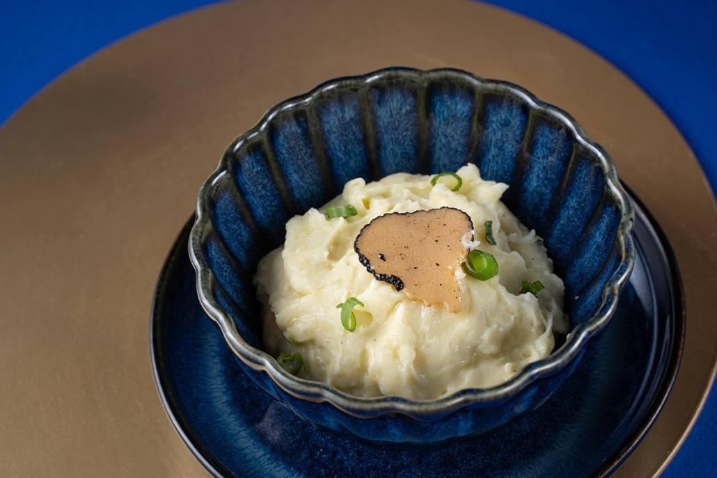 Puré di patate con condito e servito con tartufo e olio extravergine.