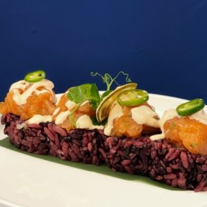 Roll di riso con alga nori, avocado, tartare di tonno e jalapeno