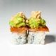 Roll di riso con alga nori, interno salmone, avocado guarnito con tartara di branzino e salsa limone